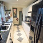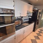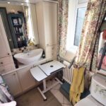 Has central heating radiator, storage cupboard housing wall mounted combination gas boiler.
