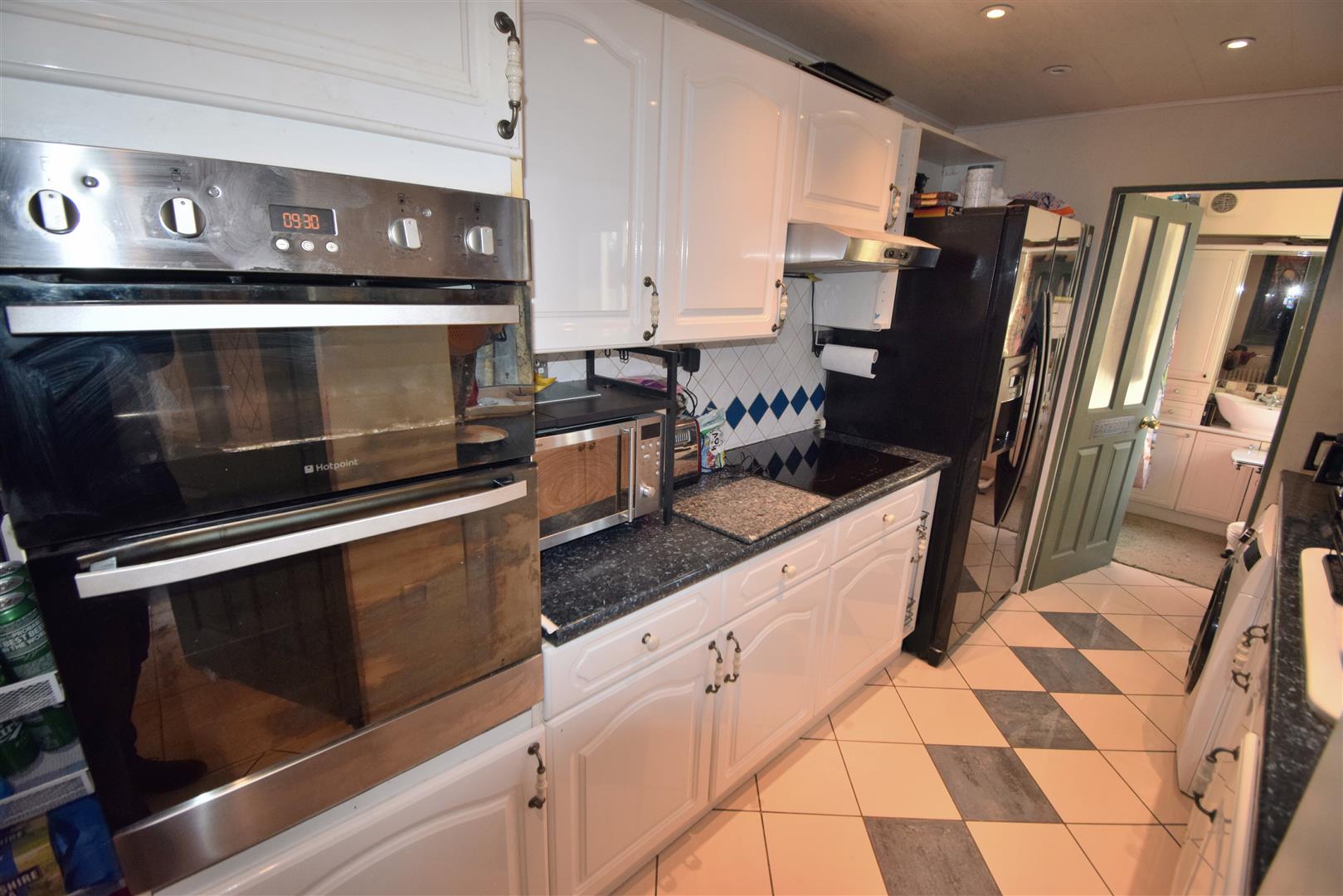 Has a range of fitted wall and base units, laminate work surfaces, tiled splash backs, inset sink unit with mixer tap, built in double electric oven and hob with extractor hood, contemporary central heating radiator, ceiling spotlights and plumbing for automatic washing machine, tiled floor and ceiling spotlights.