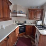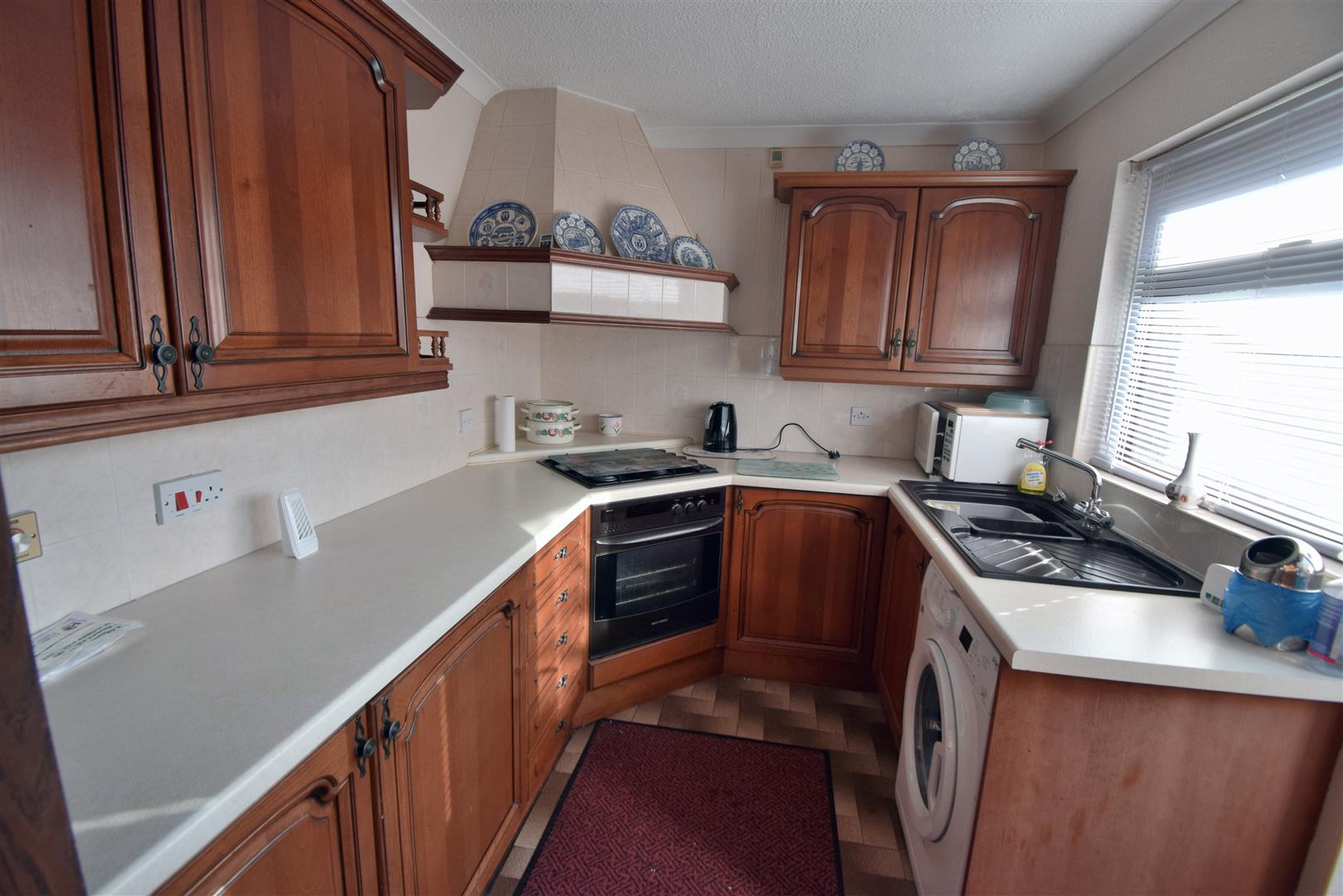 Has a range of fitted wall and base units, laminate work surfaces, tiled splash backs, inset sink unit with mixer tap, built in electric oven with gas hob and extractor canopy, plumbing for automatic washing machine, coved ceiling, central heating radiator and UPVC entrance door leading outside.