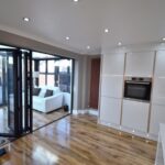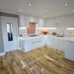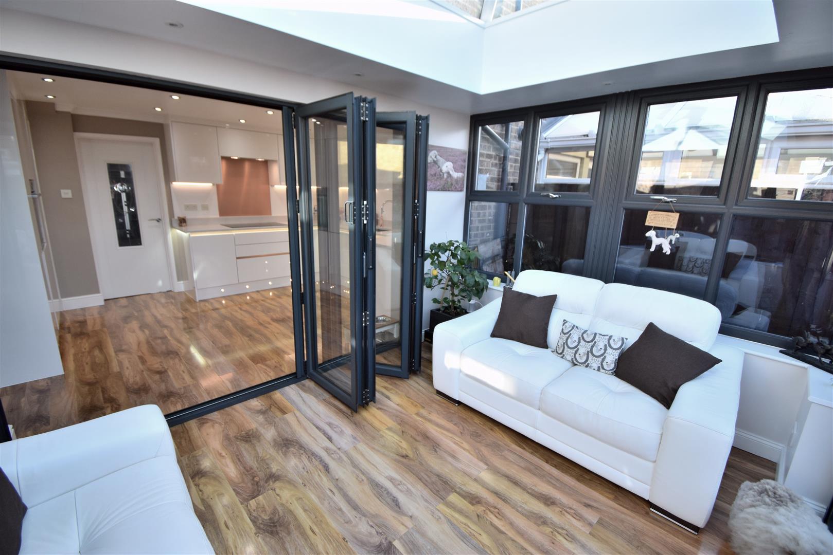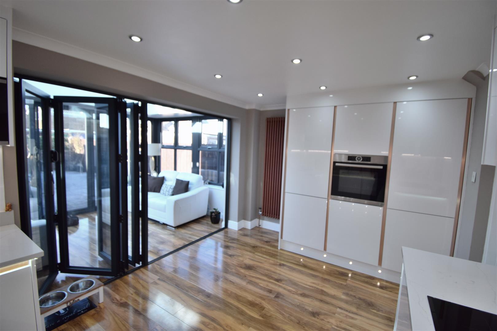 Has bi fold doors from kitchen, high gloss wood flooring and UPVC door leading out onto rear patio.