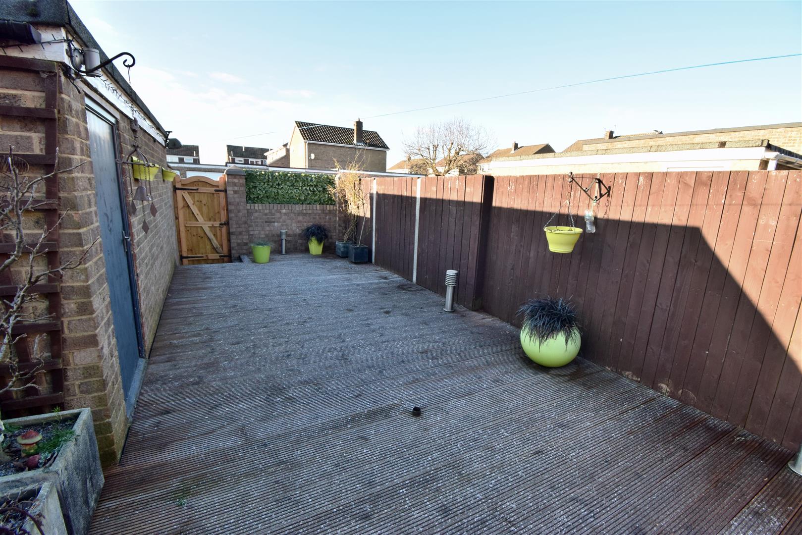 To the front of the property is and enclosed garden which is laid to lawn with mature trees and shrubs. To the rear of the property is an enclosed decked garden area with access to single garage with power and lighting and driveway for off road parking.