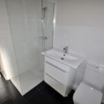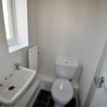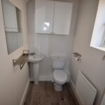 Has white suite comprising: WC, hand wash basin, tiled splash backs and central heating radiator.