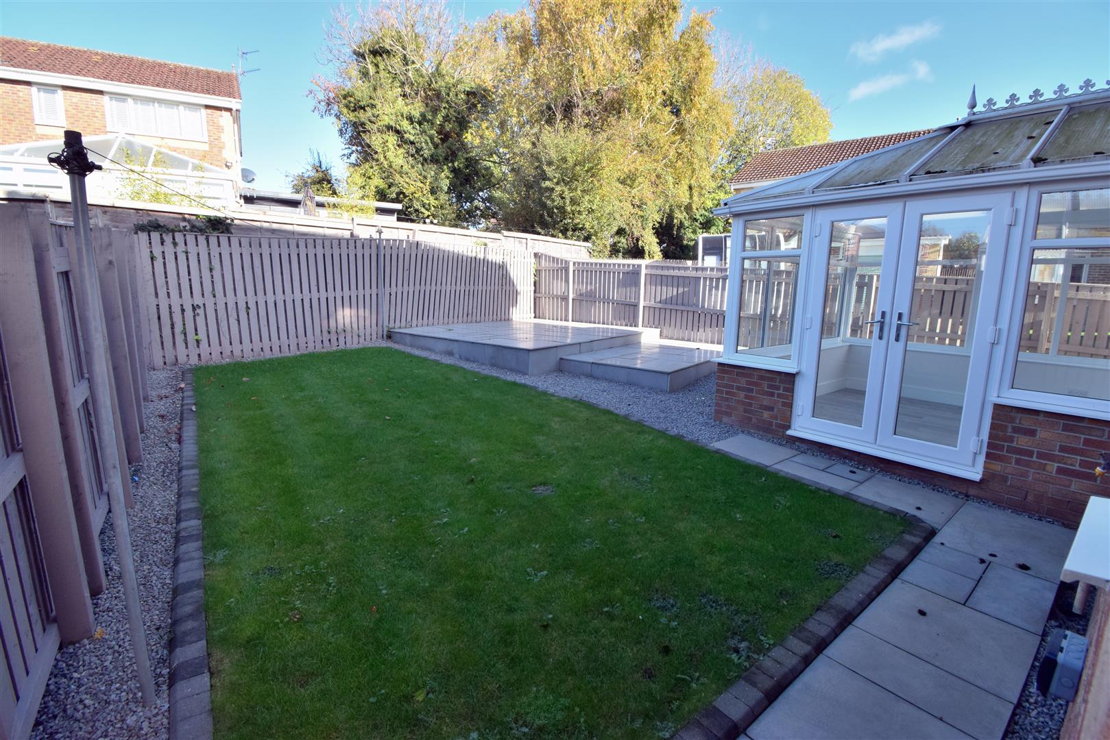 Has lawned front garden with driveway leading to garage with power and lighting. To the rear is an enclosed garden laid to lawn with raised tiled patio area.