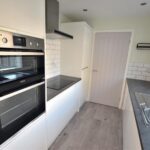 Has range of fitted high gloss wall and base units, laminate work surfaces, inset stainless steel sink unit with mixer tap, tiled splash backs, built in double electric oven and induction hob, integrated fridge freezer and dishwasher, laminate flooring and central heating radiator.
