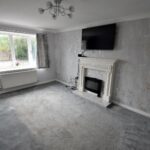 Has feature fire surround inset with flame effect electric fire and central heating radiator.