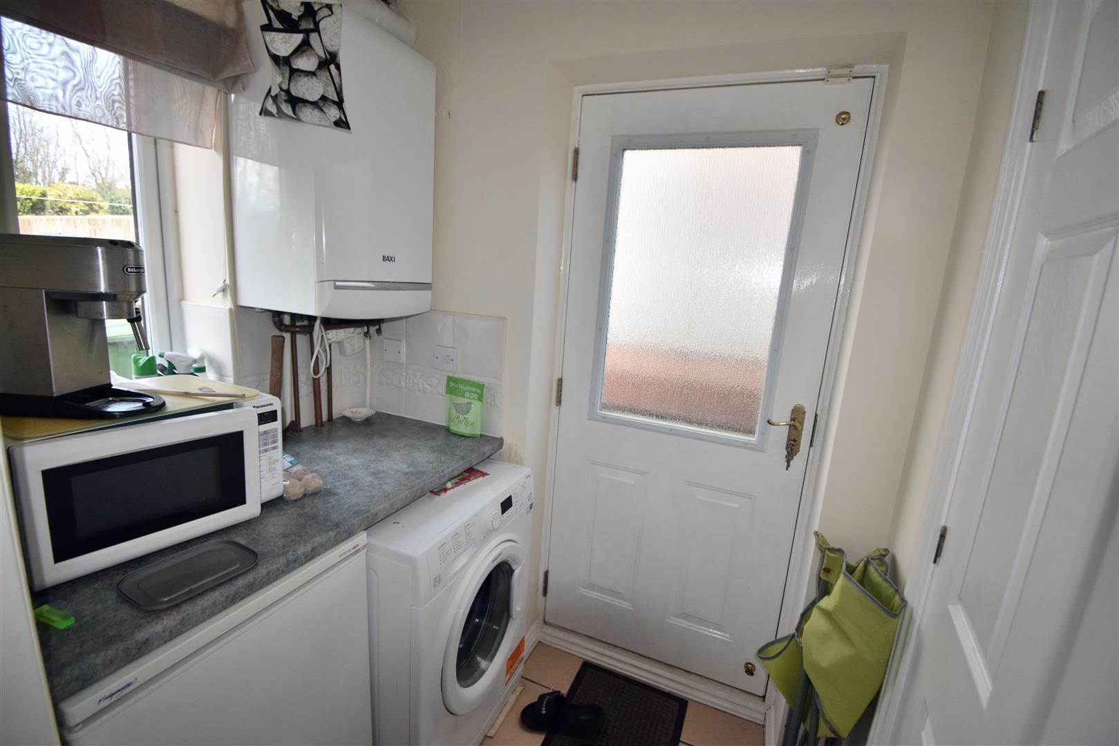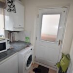 Has laminate work surfaces, plumbing for automatic washing machine, wall mounted combination gas boiler, tiled floor, tiled splash backs and composite entrance door leading outside.