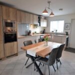 Has a premium range of fitted wall and base units, laminate work surfaces with upstands, inset stainless steel sink unit with mixer tap, integrated fridge freezer and dishwasher, plumbing for automatic washing machine, built in electric oven with gas hob, built in microwave, tiled floor, central heating radiator, staircase leading to the first floor.